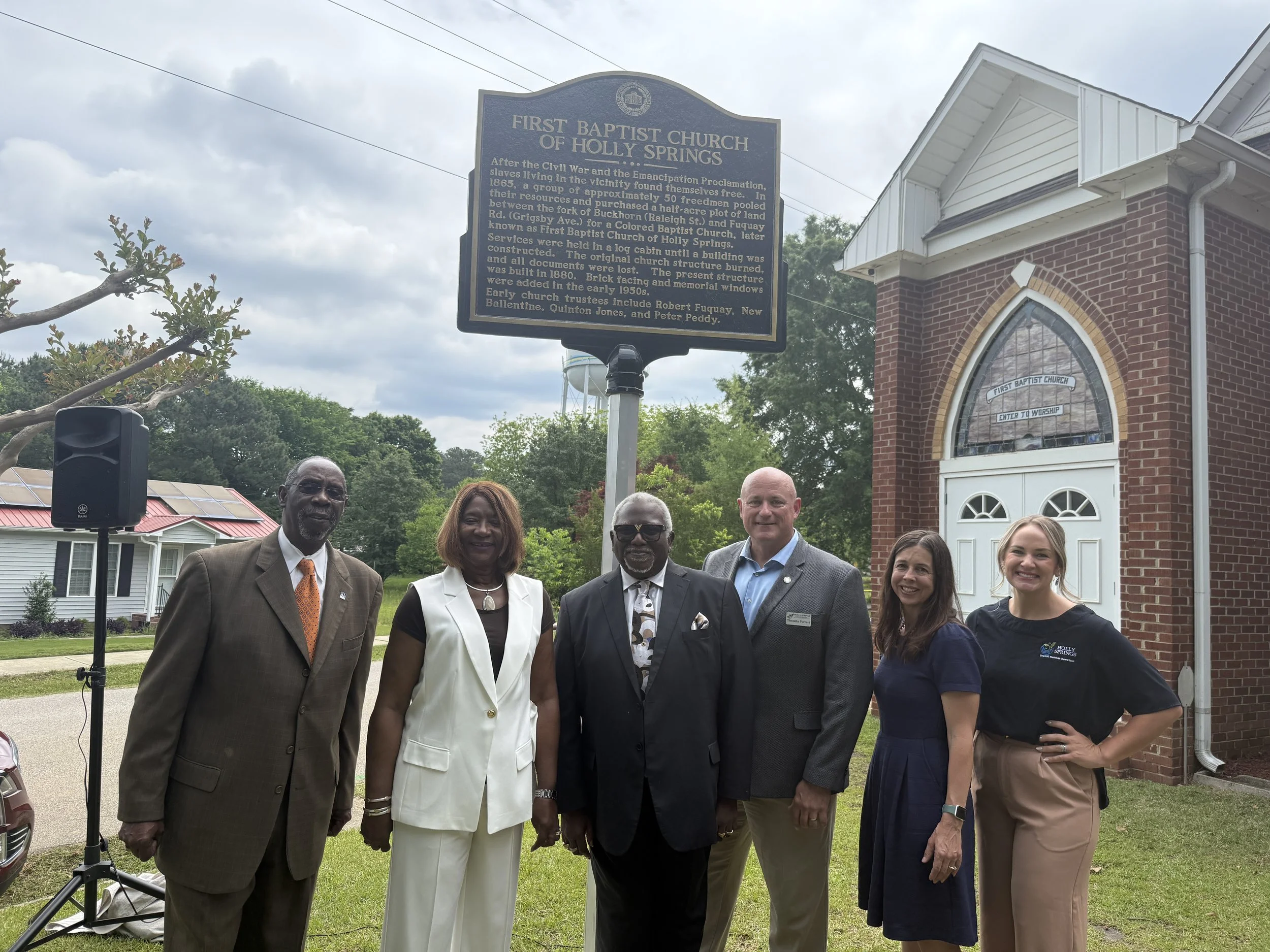 In May 2025, the Town unveiled a historical marker at First Baptist Church to commemorate the church’s significant location and its members who helped shape the Holly Springs community. Both church and community leaders attended the unveiling ceremony for the marker.